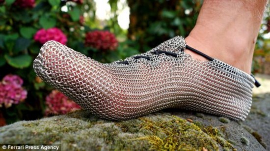 據英國《每日郵報》1月17日消息,近日,德國為熱愛(ài)赤腳跑的人們出品了一款鎖子甲制成的、名為PaleoBarefoots的“跑鞋”,讓他們既能享受到親近自然的快感,又能減少腳底直接接觸地面的痛感。